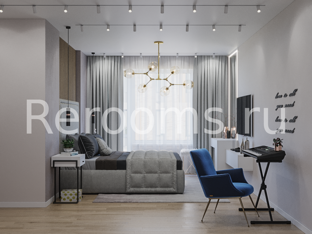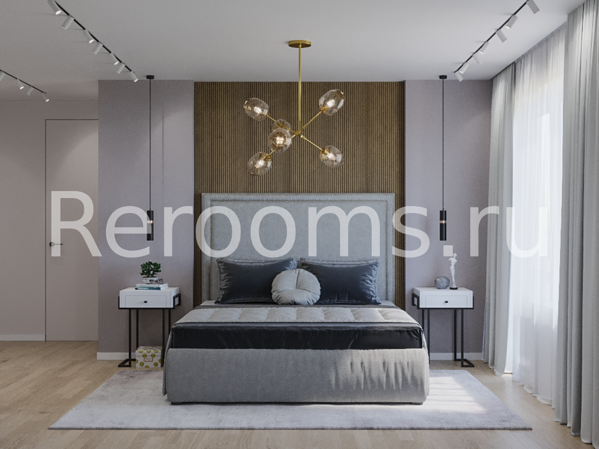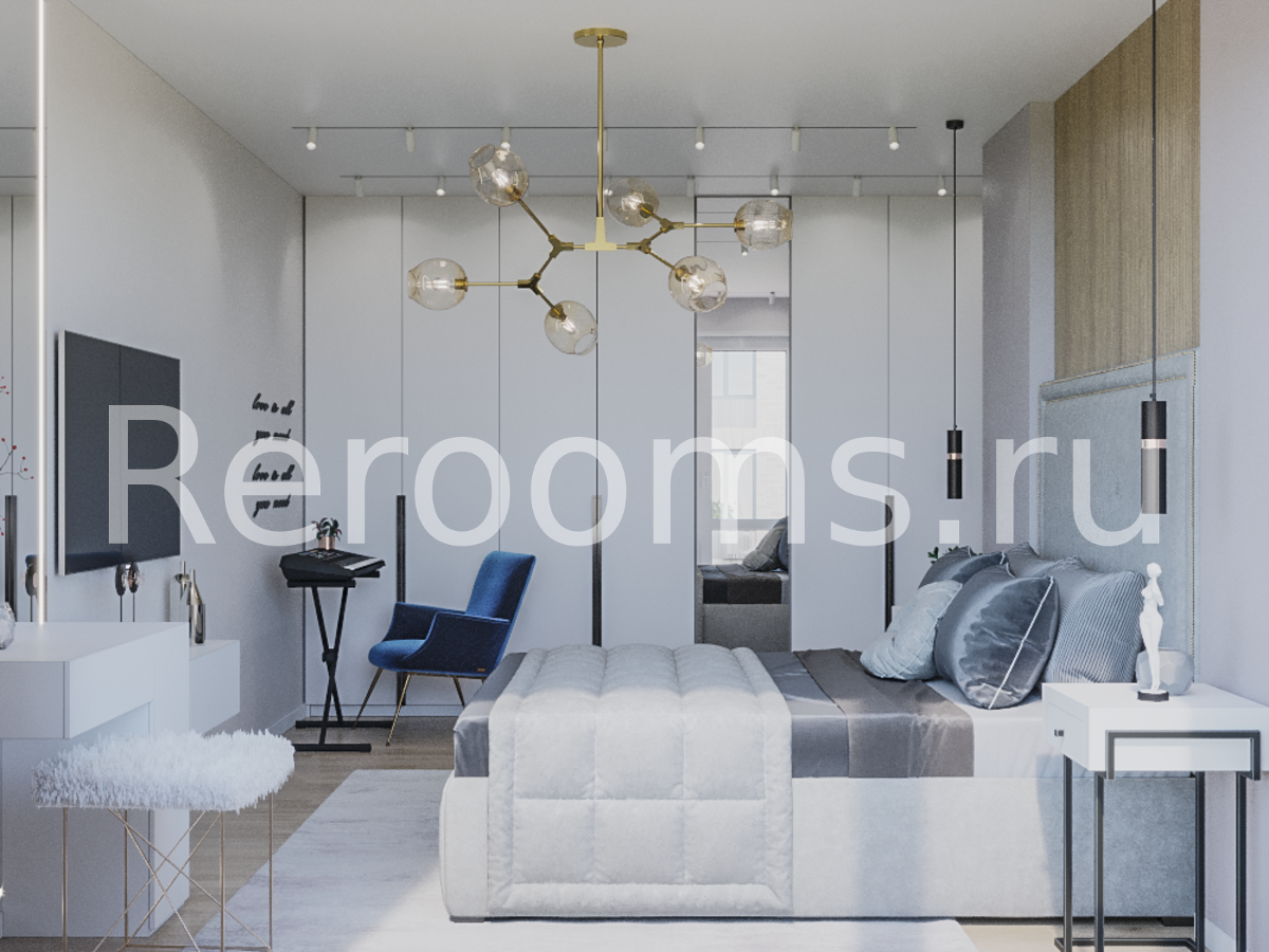 Данная спальня, выполненная в стиле контемпорари, привлекает своим ультрасовременным видом и модным дизайном. Светлая цветовая гамма, визуально увеличивает пространство, а сочетание различных текстур делает его интересным и уникальным. Так дерево здесь идеально миксуется с металлом, глянцем, стеклом, бархатом и мехом. Ансамбль дополняют разноплановые светильники и стильные элементы декора.