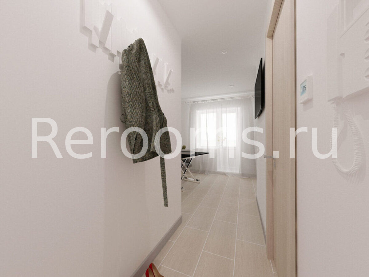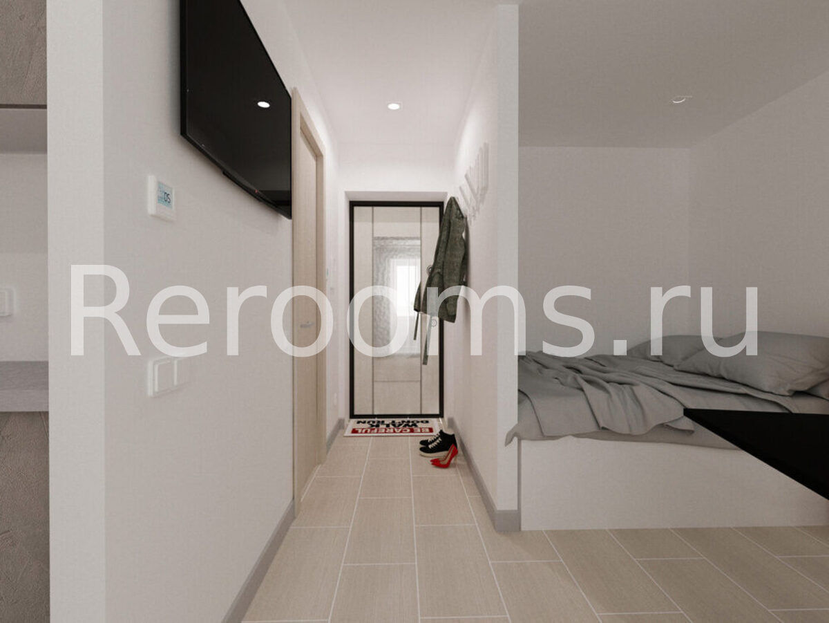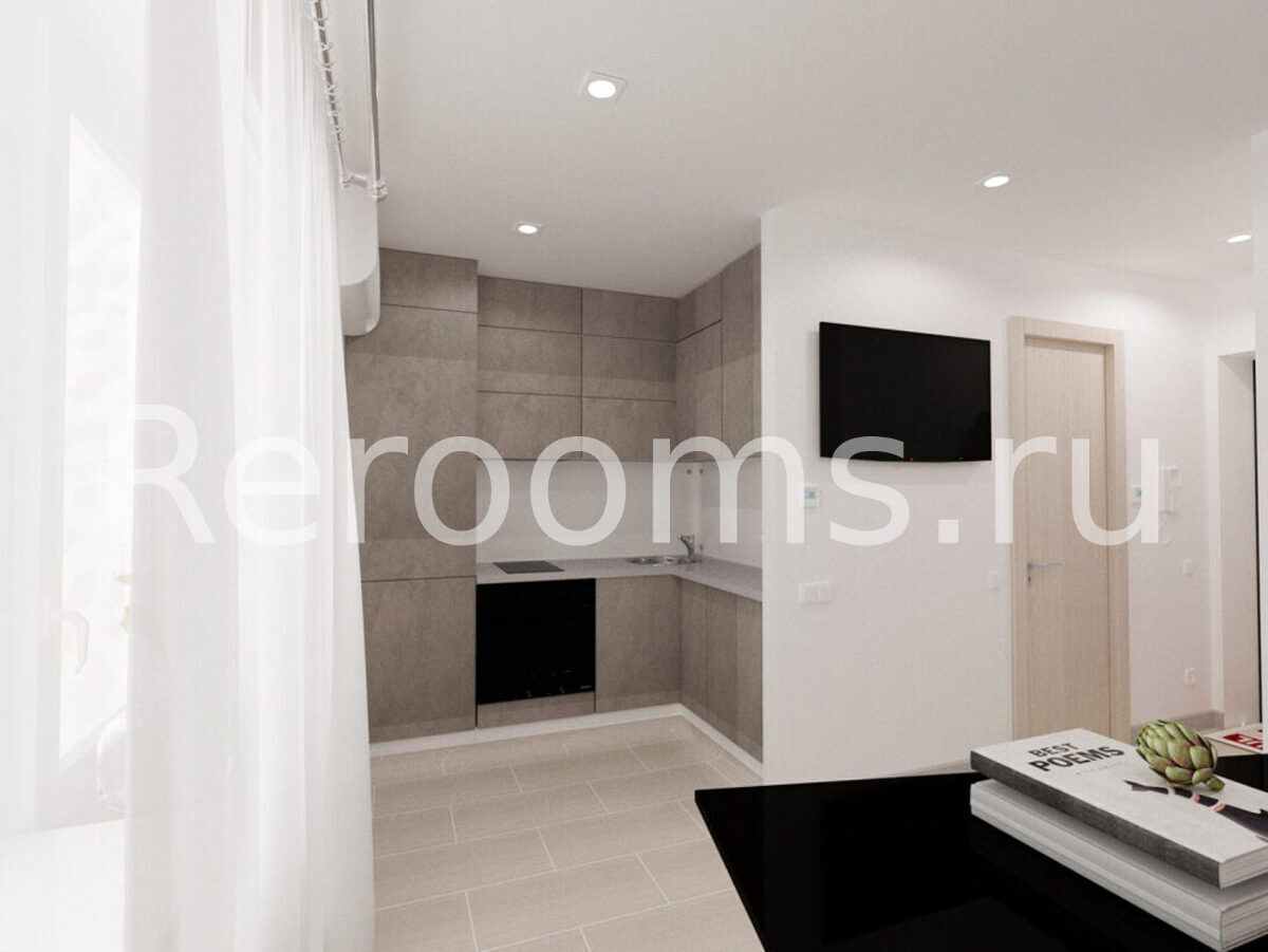 Интерьер выполнен в природной цветовой гамме. Белые стены визуально увеличивают пространство. Несмотря на небольшие размеры помещения в кухонном гарнитуре поместилась вся необходимая техника, в том числе и водонагреватель. Стол - трансформер служит одновременно и журнальным столиком, и обеденным столом.