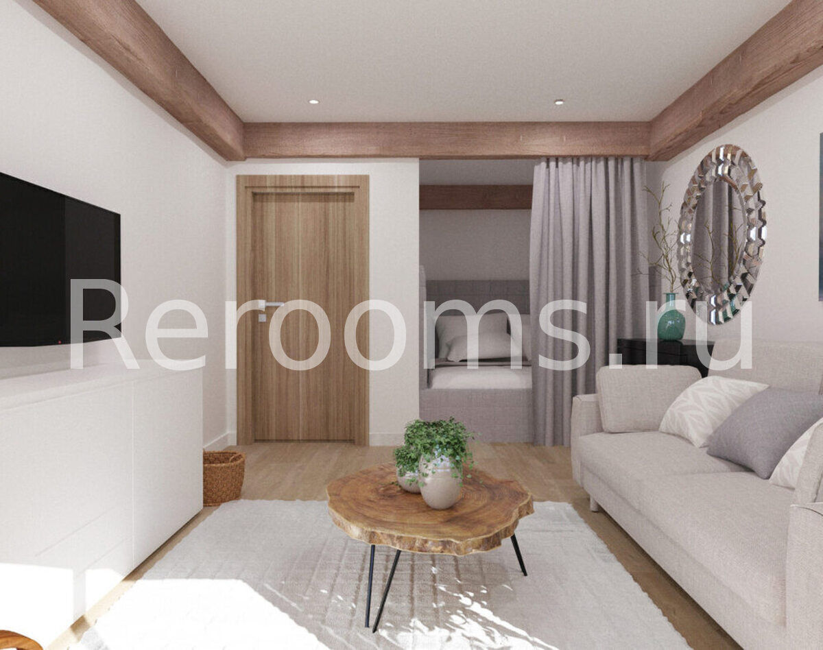 Дизайн-проект зала 24.6 м² Скандинавский стиль для ЖК "Урожайный"