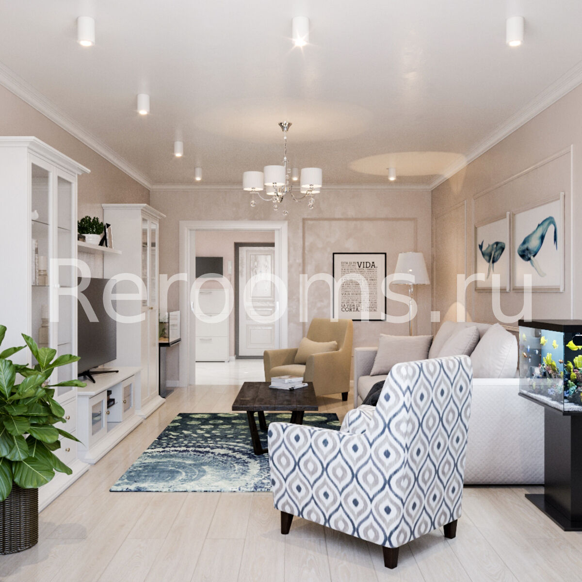 Дизайн этой гостиной выполнен в лучших традициях неоклассического стиля. Строгие архитектурные формы, изысканный декор, цветовая палитра - все это идеально соответствует концепции современной классики и делает интерьер гармоничным и респектабельным.