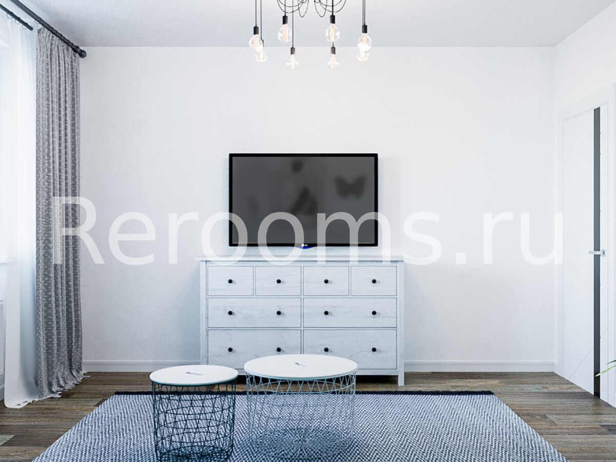 В дизайн-проекте этой гостиной дизайнер воплотила основные черты скандинавского стиля. Универсальность, простота, практичность и красота в этом интерьере на первых ролях. В отделке использован характерный для сканди-стилистики белый цвет, который обеспечивает максимальное распространение света в помещении. Так солнечные лучи отражаются от белоснежных поверхностей и распространяются по всей комнате. Материалы, имитирующие древесину, полностью отвечают концепции сканди, а простая, но функциональная мебель является визитной карточкой данного стиля.