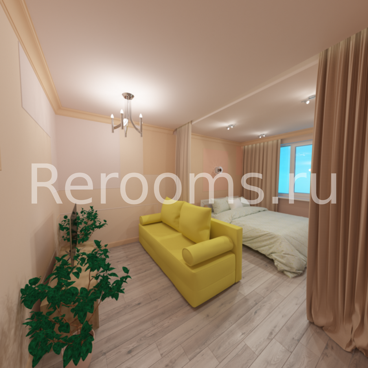 Фото № 2: Дизайн-проект зала 18.2  м² Стиль Контемпорари для ЖК Южный квартал