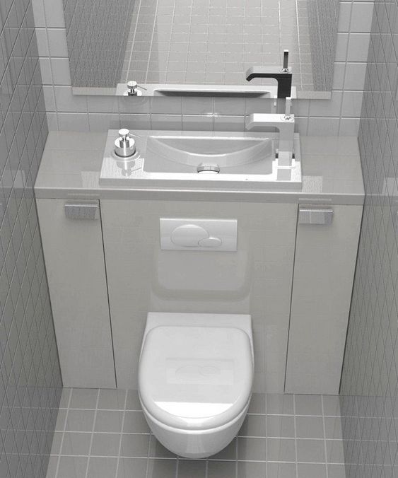 Есть и универсальное решение: поставить в маленький санузел совмещенные унитаз и раковину — последняя располагается на бачке и во время использования наполняет его, если внутри не осталось воды. Это дорогая, но очень практичная сантехника: она позволяет экономить воду, а еще сэкономит пространство вашего небольшого туалета.