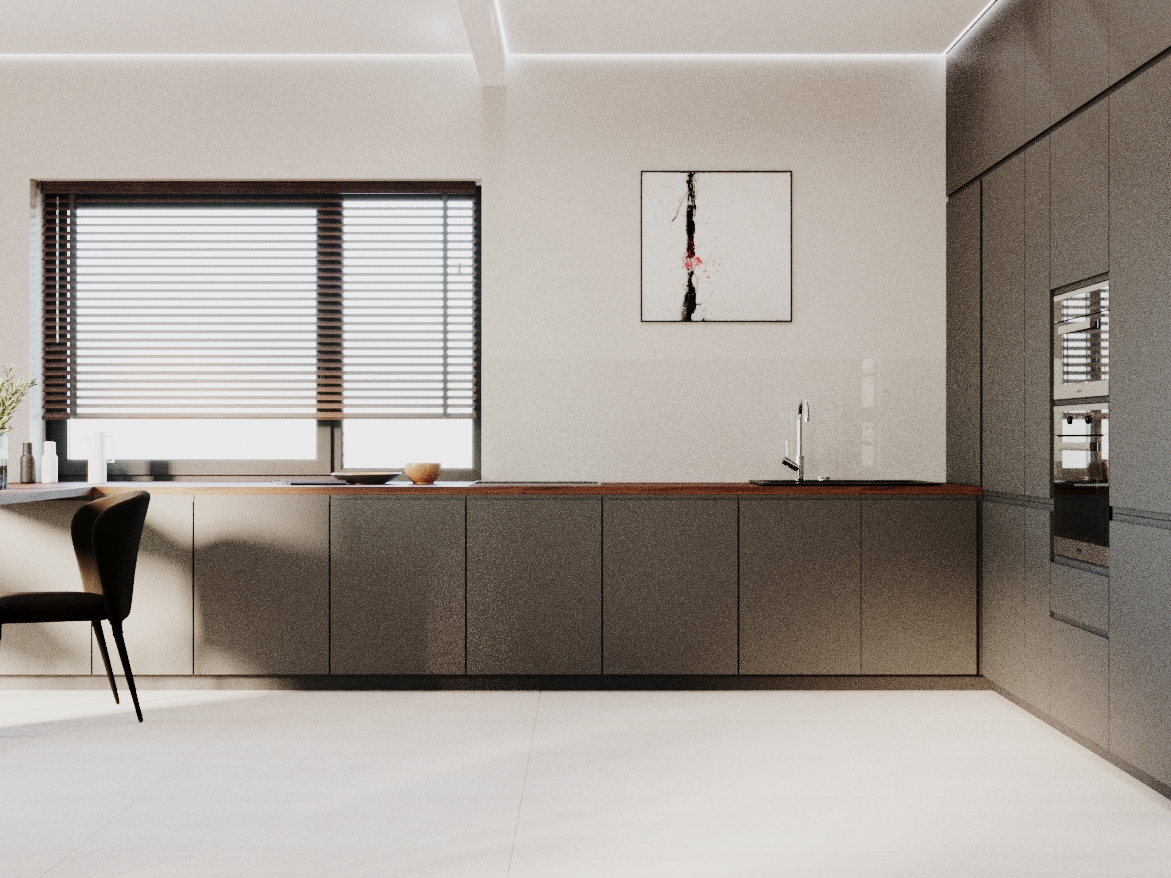 При слишком узком проходе будет сложно открывать ящики, пользоваться духовкой, да и просто ходить. При широком проходе п-образная кухня потеряет свое главное преимущество — удобство, так как вам будет крайне некомфортно заниматься чем-то в помещении, где все зоны размещены по разным углам.