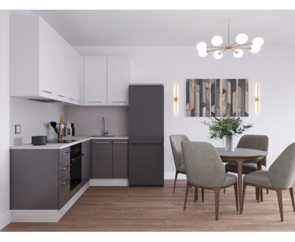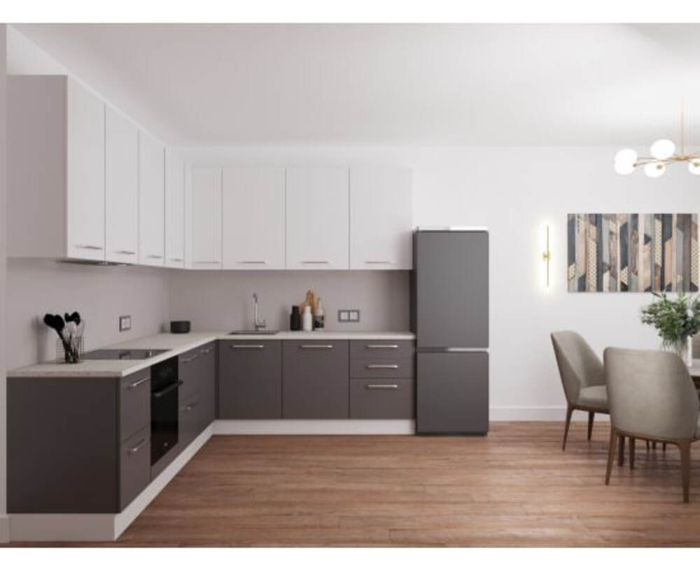 – подбирать гарнитур в тон стен, чтобы кухня будто растворялась в них, за счет этого пространство визуально увеличится. Допустимо использование бежевого, кремового, светло-серого, а также универсального белого. Особенно актуально использование именно белого цвета для маленьких пространств.