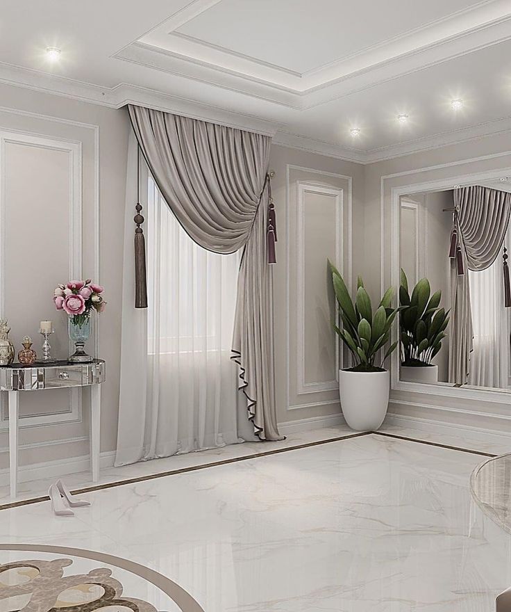 Длина штор в гостиной имеет очень большое значение. Длинные полноразмерные шторы не только добавляют в гостиную красок, защищают ее от солнца и позволяют создать уютное приглушенное освещение в комнате. Они также визуально поднимают потолок и расширяют помещение в целом.