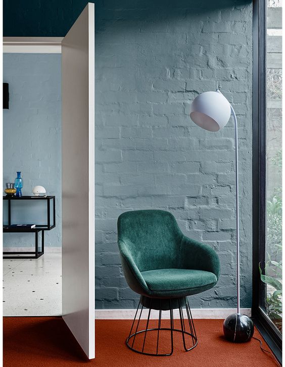 Черный цвет редко выбирают для кирпичных стен в интерьере — и очень зря. Прием позволяет создать необычный и стильный вид. есть в магазине .