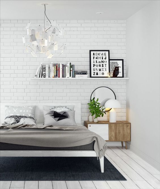 Стена из белого кирпича в интерьере кажется иногда уж очень индустриальной и неуютной. Разбавить ее очень легко при помощи ковров пестрой расцветки со сложными узорами и в теплой цветовой гамме.
