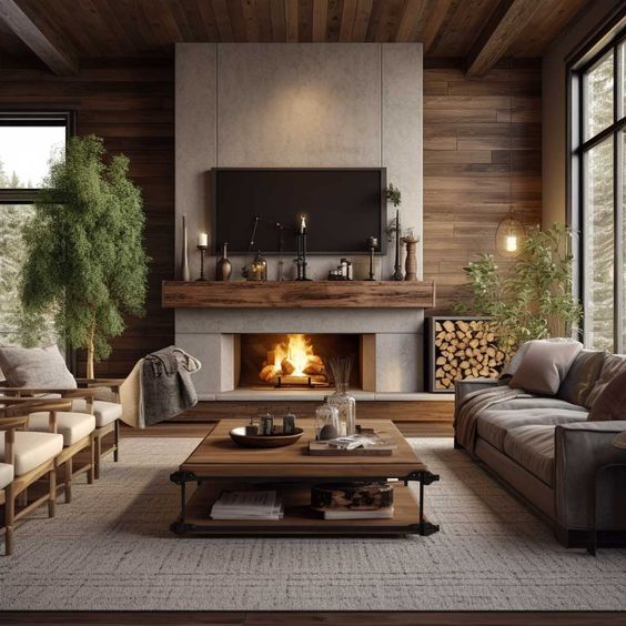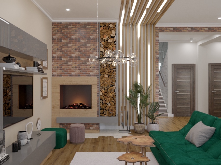 Камин на кухне – тоже не редкость. Его располагают там для создания атмосферы тепла около столовой зоны или для зонирования большого пространства. Особенно хорошо это работает с большими помещениями, где кухня объединена с гостиной.