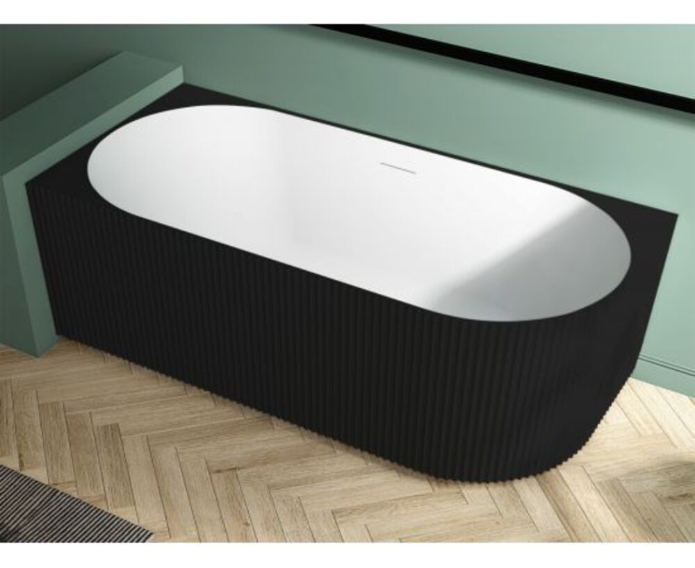 Если хотите сделать черную ванну и добавить эко-стиля, то сделайте деревянный пол, также можно добавить живые растения.