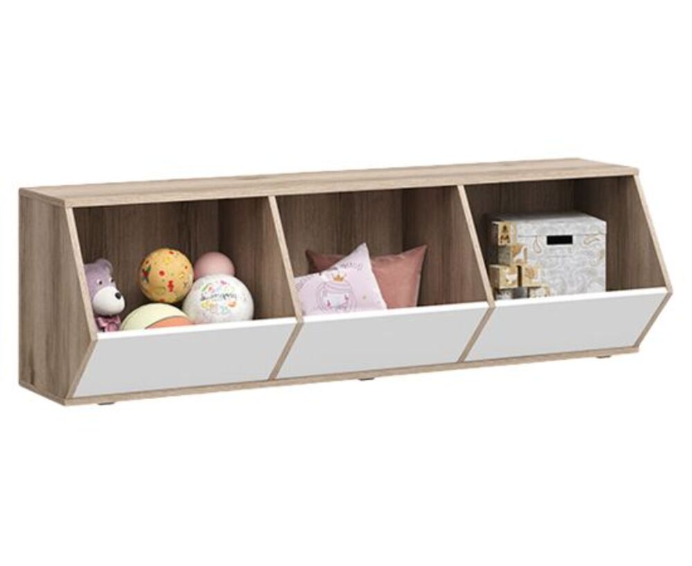 Кроме того, наши специалисты, как и полагается, четко обозначили границы пространства для каждого ребенка. Они установили открытый стеллаж, который стал не только местом для хранения книг и нужных мелочей, но и разделителем между кроватями; письменный стол с удлиненной столешницей и двумя стульями. Между стульями поставили низкую тумбу с ящиками — она разделяет рабочие места детей, и благодаря такому приему они не будут толкаться и высчитывать сантиметры своего участка письменного стола.