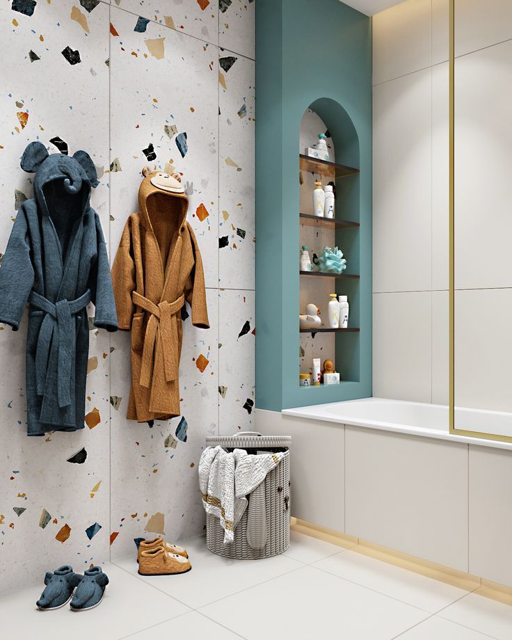 Создание интерьера ванной комнаты для ребенка — увлекательное дело: можно выбрать любой стиль и цвета, чтобы малышу было интересно здесь находиться. Тогда и процесс обучения правилам ежедневной гигиены станет проще. При этом не менее важно, чтобы ванная была практичной и безопасной. Рассказываем, как совместить функциональность и декор в одном помещении.