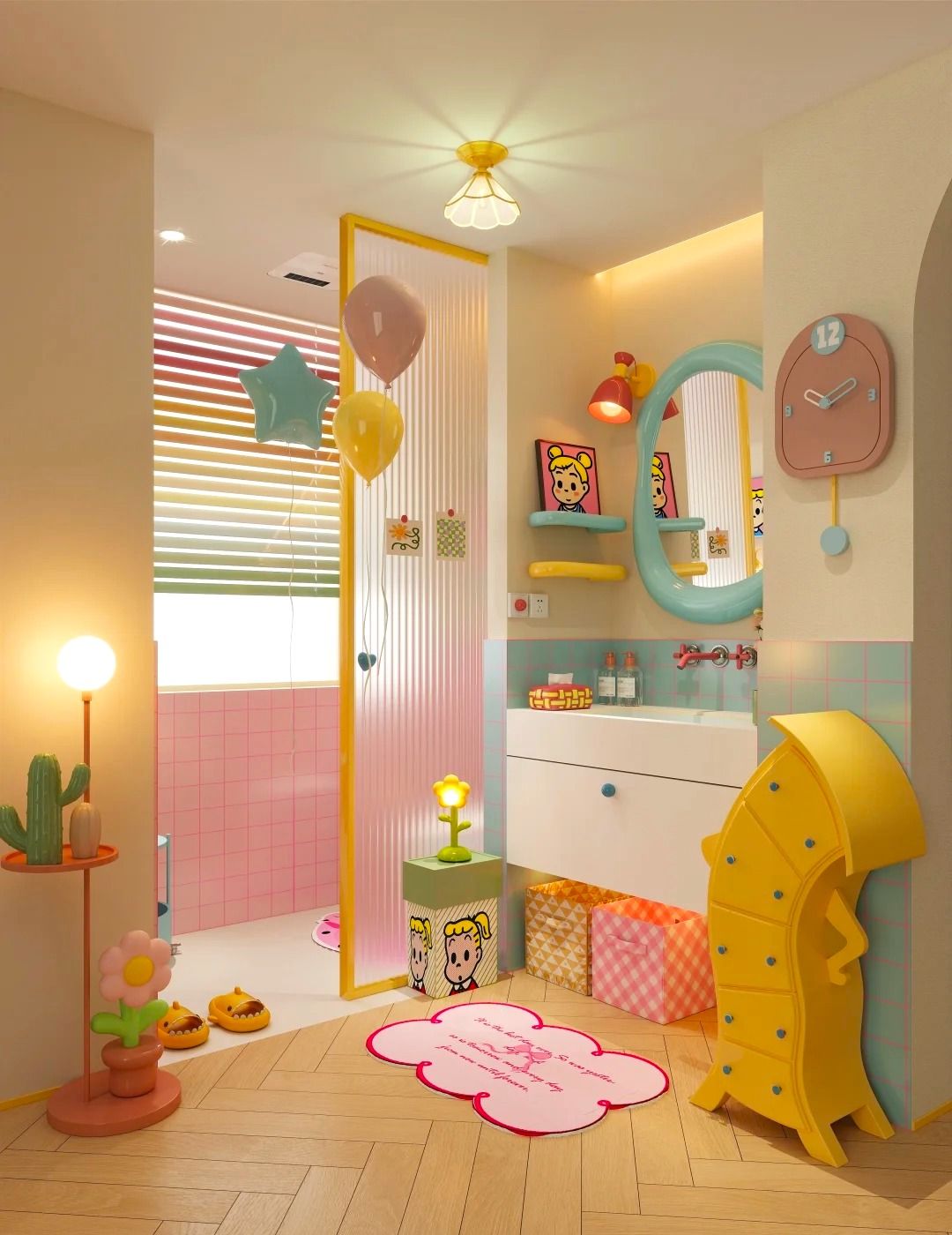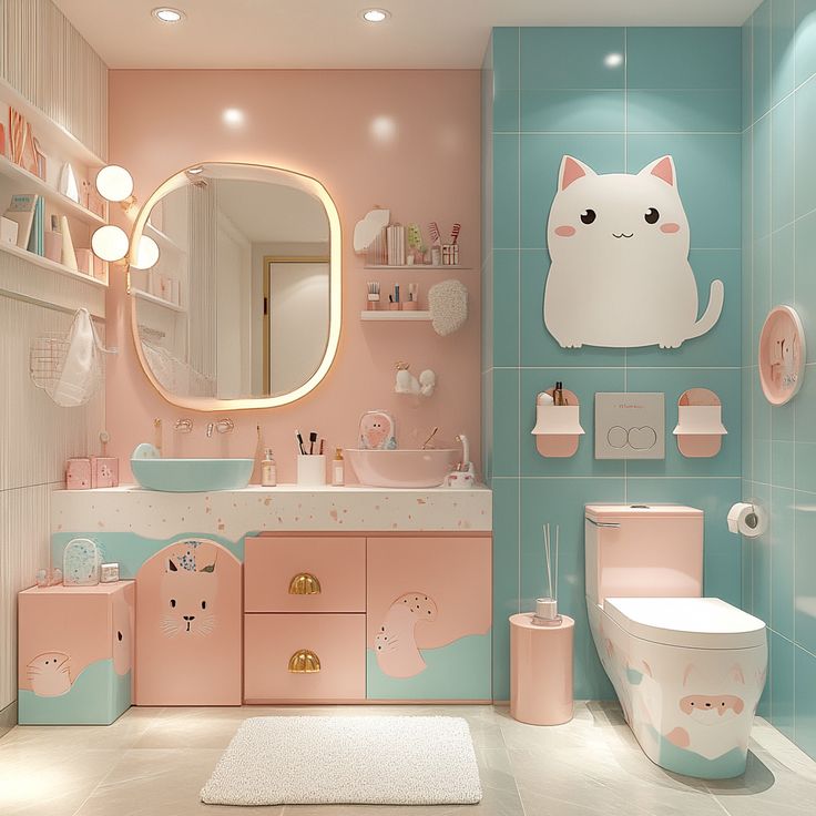 Хорошая идея — сделать ванную комнату в том же дизайне, что и комнату малыша.