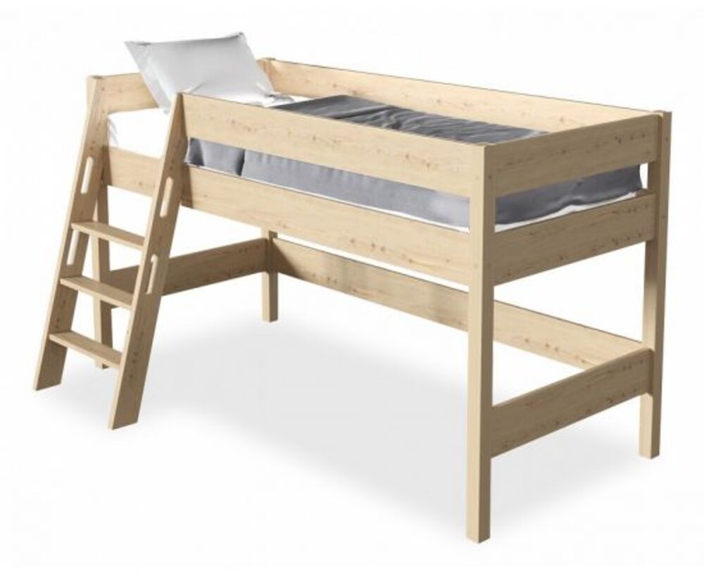Еще один вариант лестницы для кровати-чердака — модель, которая устанавливается под углом. Такой угол может быть разным, и чем он больше, тем больше места занимает сама лестница. В такой модификации она бывает прямой или радиусной (с поворотом).