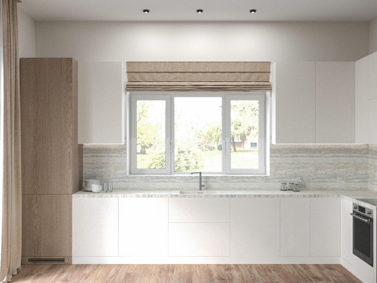Так что в узких или компактных угловых кухнях со стиральной машиной лучше оставить технику просто под столешницей, без дополнительных дверец — это значительно сэкономит пространство.