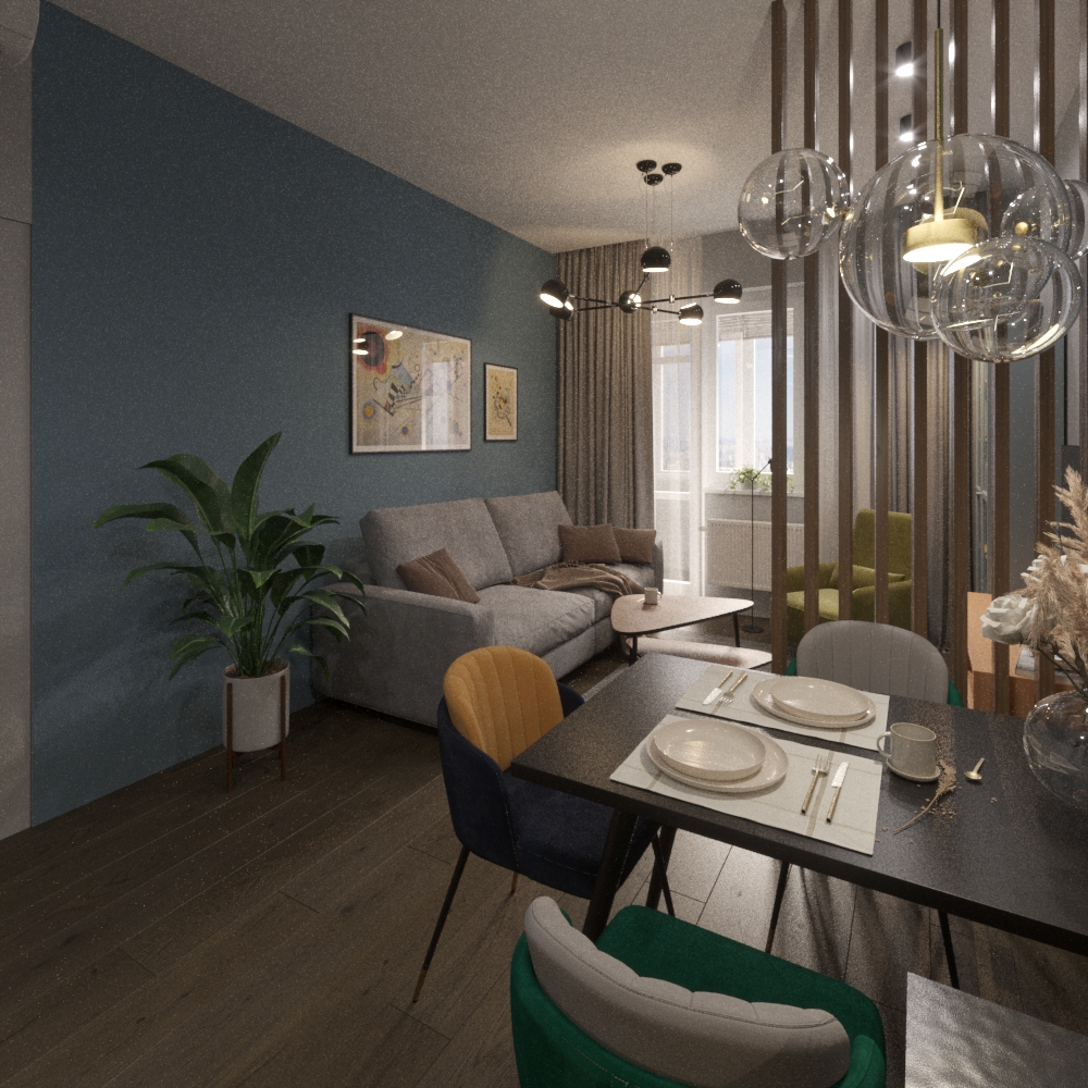 Но главное — не переборщить с пестрыми тонами, иначе они могут стать излишне концентрированными и броскими в компактной квартире.