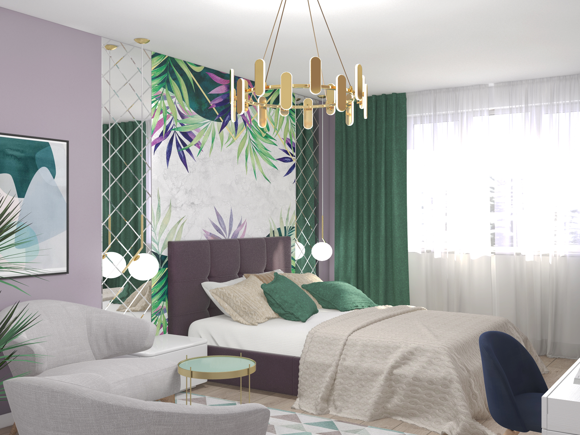 В-пятых, можно «откусить» немного площади от комнаты, соорудить полноценную стену и новый дверной проем и сделать гардеробную. Такая перепланировка показана на фото эскиза расстановки мебели. Важно внести все изменения в план капитального ремонта квартиры.