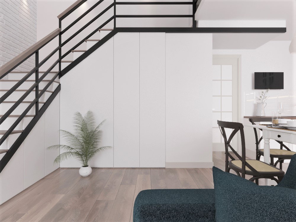 Кстати, если вы подбираете вариант для удобного размещения книг в двухэтажном здании, можно реорганизовать под хранение книг стены вдоль обычной лестницы.