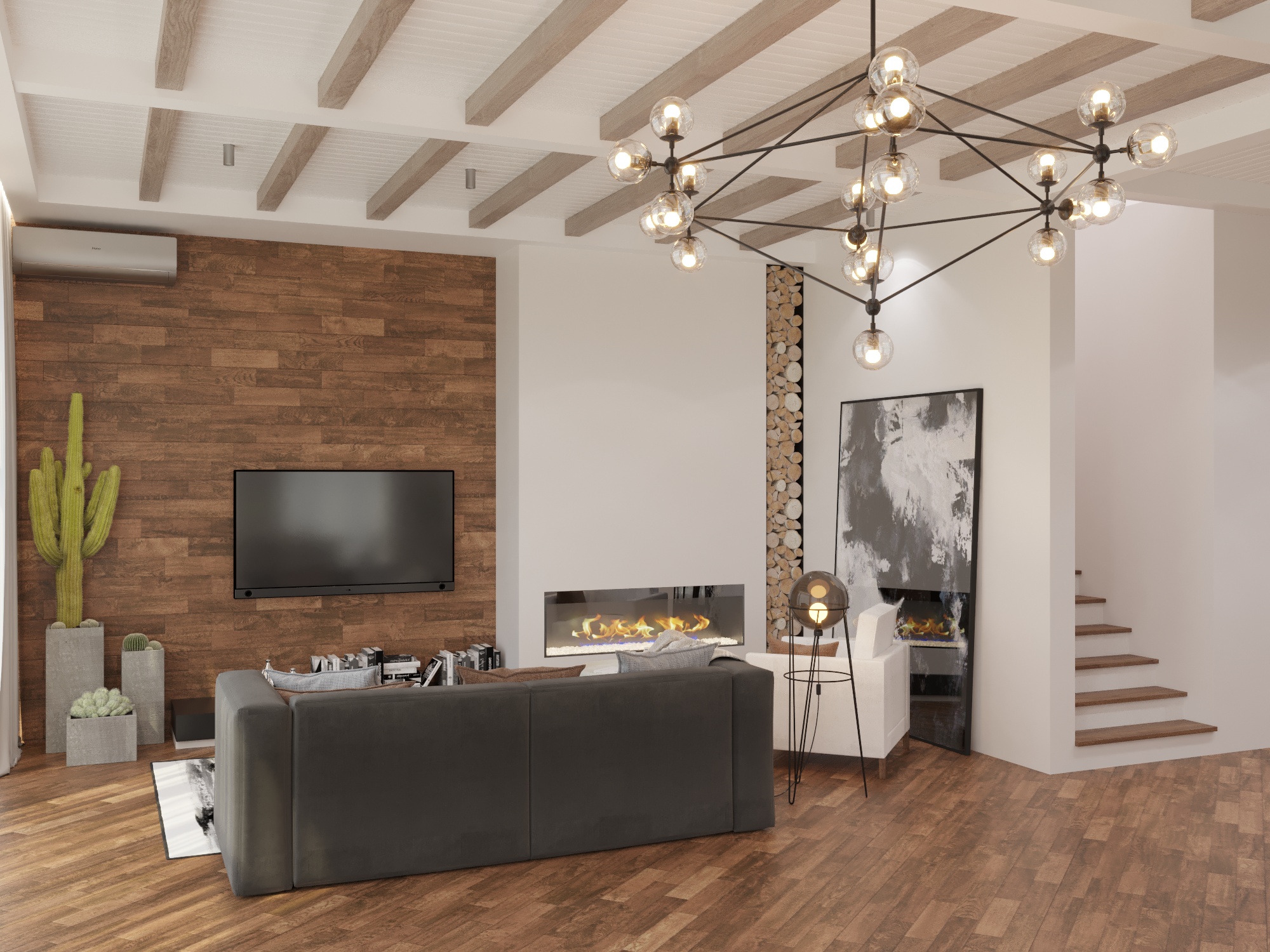 9. Гостиная с камином и телевизором