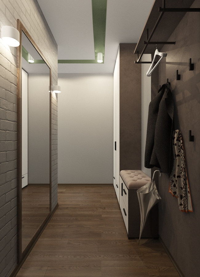 Для отделки стен ванной и прихожей лучше использовать имитацию беленой кирпичной кладки. Используя светлые оттенки в комнатах с дефицитом света и площади, можно создать выразительные иллюзии, благодаря которым помещения будут казаться просторнее.