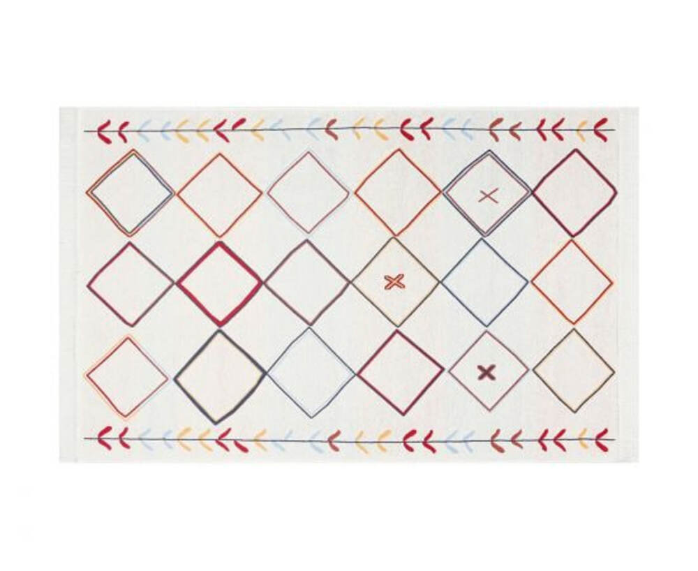 Посмотрите, какой необычный ковер! Пожалуй, это очень современный узор, приятная для глаз палитра, а общий вид напоминает технику печворк.