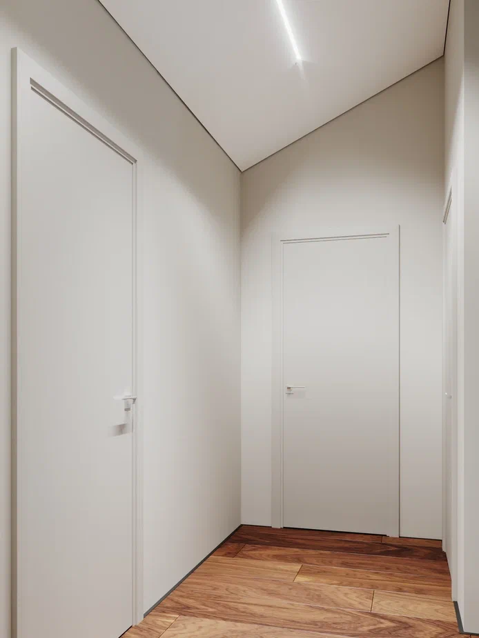 А вот светлые стены в компании таких же дверей, наоборот, помогут визуально поднять потолок помещения и увеличить его пространство. А оставшийся темным пол сделает палитру интерьера более разнообразной, она не будет выглядеть монотонной и скучной.