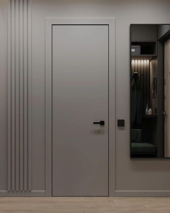Так что при выборе темной двери оформляйте напольный плинтус в интерьере белым цветом или другим максимально светлым оттенком. Главное, чтобы он гармонично комбинировался со стенами и напольным покрытием, сильно не выделяясь и не создавая дополнительного контраста.