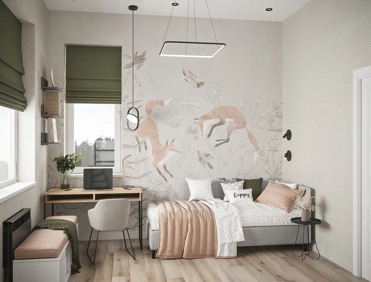 Один из самых простых способов декорирования комнаты — оклеивание обоями. Мы советуем выбирать не однотонные полотна, а с интересным рисунком. Так как спальня — это все-таки то место, где нам хочется отдохнуть, лучше отказаться от темных цветов и чересчур ярких рисунков. Поберегите свои глаза и психику. Выбирайте обои пастельных оттенков с растительными или геометрическими узорами. Чем они будут оригинальнее, тем лучше.