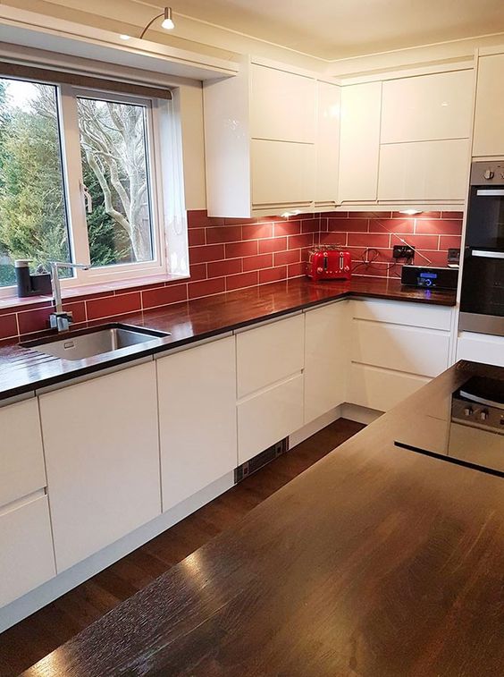 Если вам нравится, как выглядит кирпичная стена, но вы не хотите использовать грубый материал на кухне, в этом случае вам поможет декоративная плитка, сделанная под кирпич.