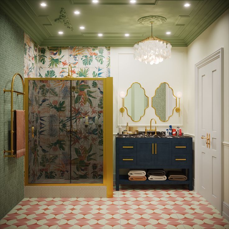 Без того яркий и изящный интерьер не стоит загромождать потолком с лепниной, однако можно позволить себе карниз с орнаментом по углам. Узор над люстрой не должен быть больше нее, иначе она затеряется. Позолоченный узор на лепнине будет сочетаться с другими аксессуарами интерьера и дополнит его.