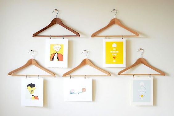 Вместо фоторамок можно использовать обычные вешалки с зажимом. Купите набор одинаковых — выглядит отлично!