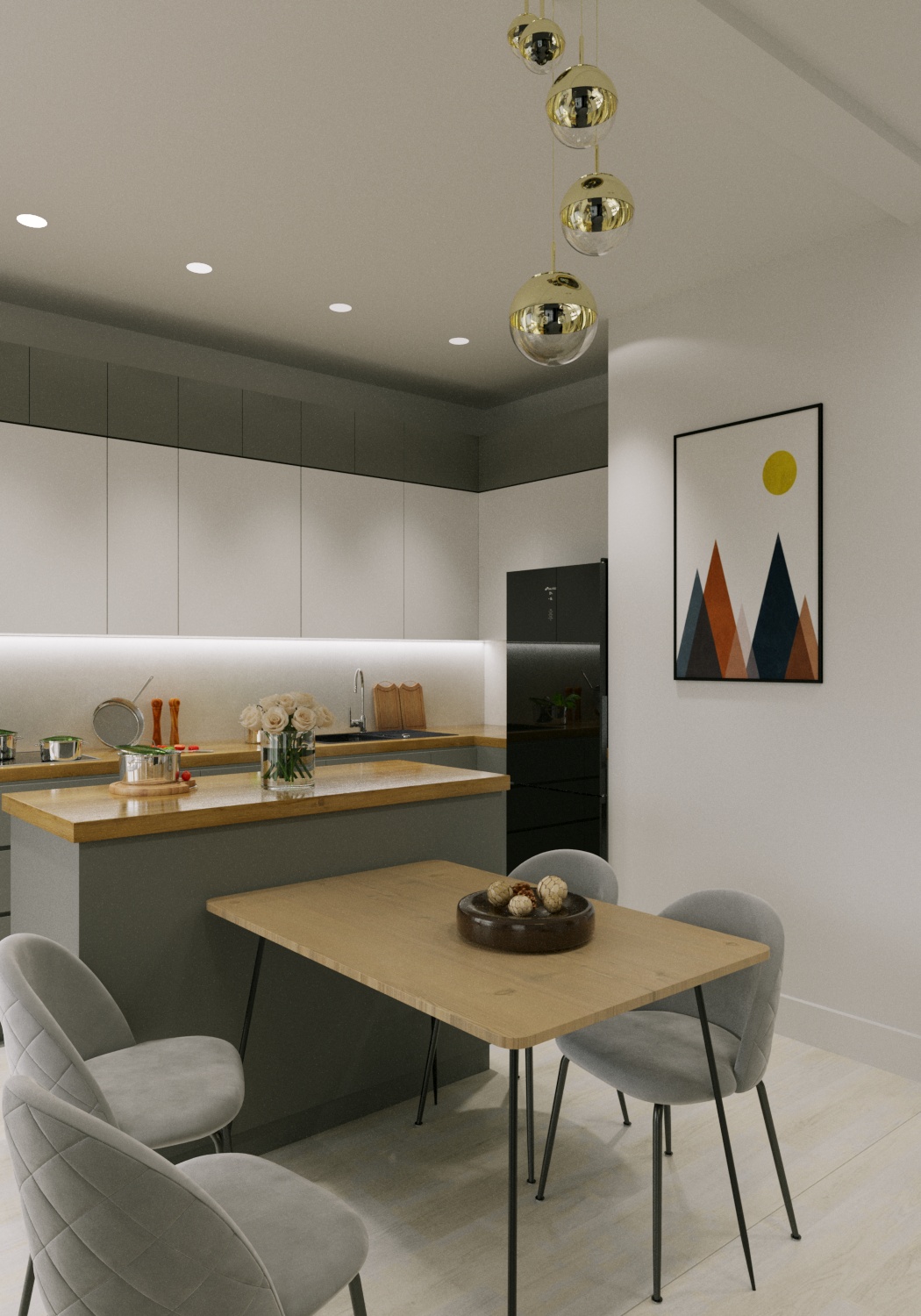 Обеденный стол на кухне с островом — это порой непозволительная роскошь даже в просторных помещениях. Но это не значит, что нужно отказываться от одного из них в пользу другого. Лучше объединить остров со столом — например, у них может быть общая столешница, на которой разместятся рабочая и обеденная зоны без потери ценной площади кухонного пространства. Оптимальное решение поможет подобрать дизайнер, а авторский надзор за проектом позволит воплотить задуманное даже в мелочах.
