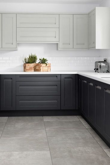 Керамогранит имеет схожие с плиткой качества, однако он гораздо прочнее и с большей вероятностью выдержит падение тяжелого предмета. В плане декоративности, как и плитка, покрытие предлагает множество вариантов оформления: поверхность керамогранита может имитировать дерево, бетон, металл и другие материалы. Отличное решение — использовать одновременно узорчатый и обычный керамогранит.