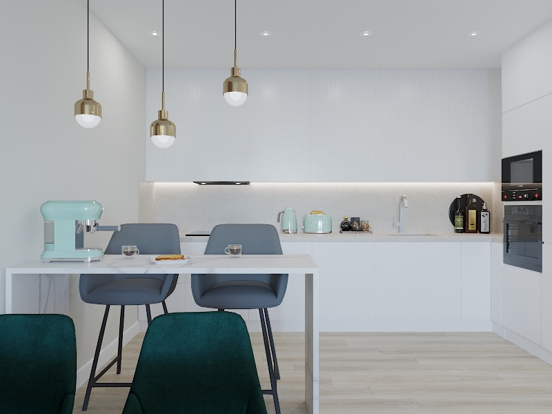 Зеленые цвета хорошо сочетаются с гарнитуром тонального оттенка. Такие оттенки успокаивают и располагают к уюту.
