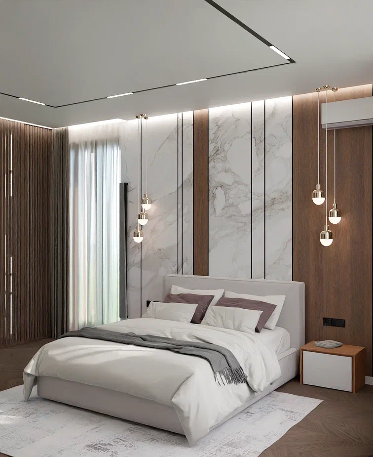 - визуальное изменение помещения. Грамотно подобранные 3D-панели помогут визуально изменить геометрию комнаты — например с помощью вертикальных волнообразных узоров можно увеличить высоту потолков. С помощью панелей также удобно расставлять акценты на различных участках комнаты — в изголовье кровати, на кухонном фартуке. Можно создать целую акцентную стену;