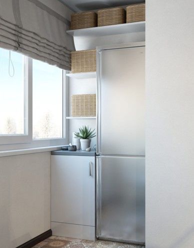 Если балкон или лоджия примыкают к кухне, то холодильник можно поставить туда. Для этого балкон придется застеклить, утеплить и снабдить электропроводкой. Много хлопот и затрат, зато кухня станет просторнее, и дверца холодильника будет реже хлопать. И продукты целее, и фигура стройнее.