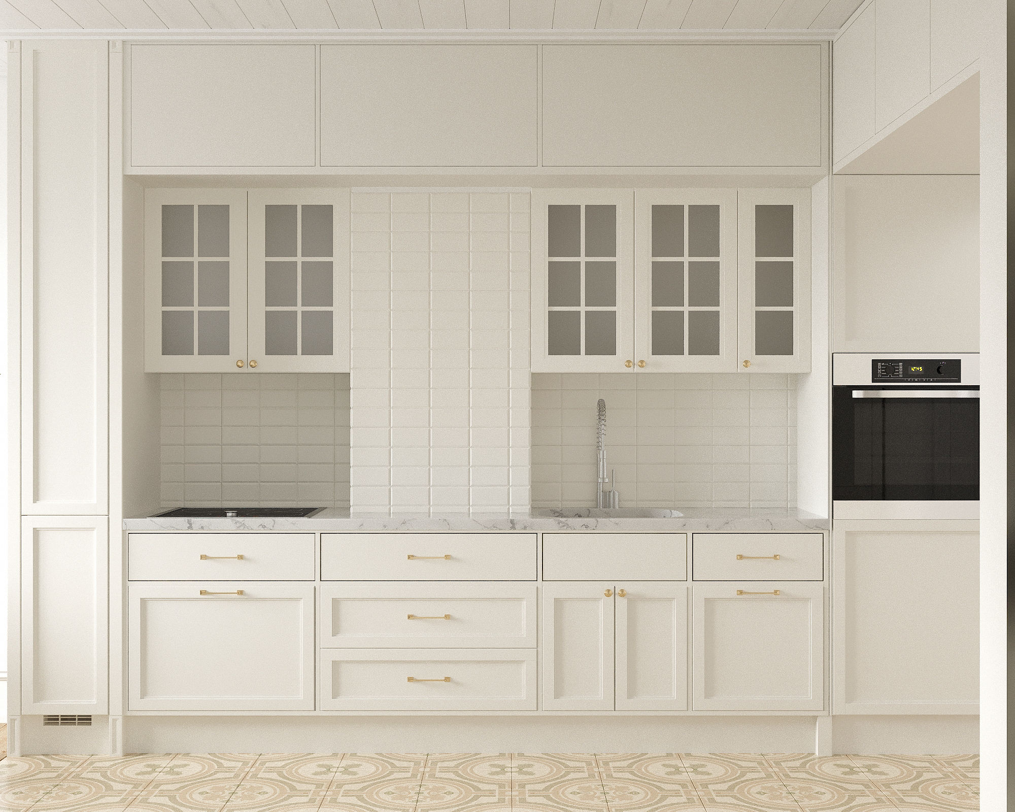 Даже такой паттерн, как елочка, при помощи «кабанчика» можно уложить по-разному. В этом случае плитка укладывается одна к другой перпендикулярно — под углом 90 градусов. Такой способ выглядит в интерьере оригинально и делает все пространство визуально интересным.