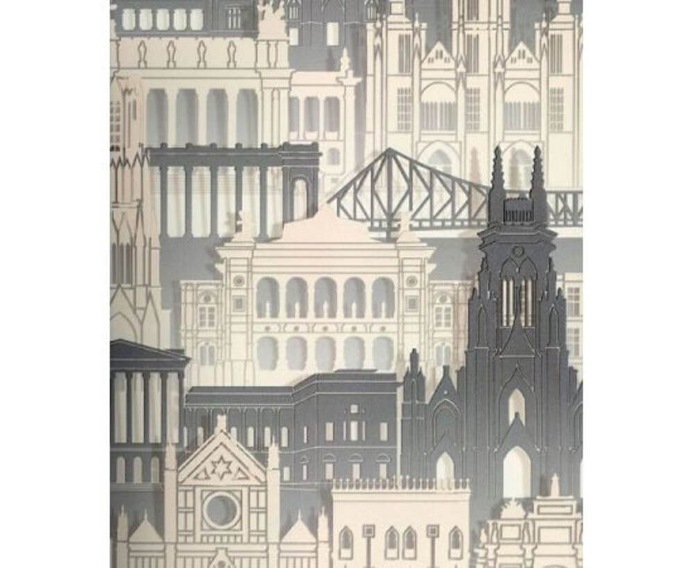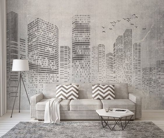 Обои, на которых схематично изображены достопримечательности города, — находка для тех, кто любит необычный декор, но не любит яркие краски. Полотно выглядит так, будто художник сделал быстрый набросок панорамы города углем — стильно и даже романтично, особенно когда изображен Париж. Обои будут хорошо смотреться как с нейтральной обстановкой, например белоснежной мебелью и светлым паркетом, так и с красочной.