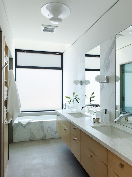 Хотите избавиться от штор, но полностью открытые окна вас смущают? Тогда поставьте матовые стекла — они имеют не полностью прозрачную поверхность и при этом пропускают достаточно дневного света. Матовое остекление можно сделать частичным, использовав такие стекла только в нижней части окна или по одной стороне комнаты.