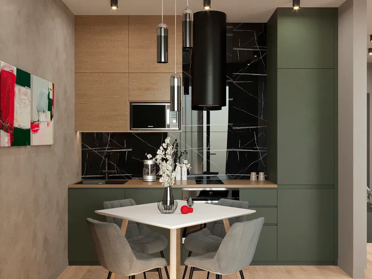 Оливковый цвет: оформление кухни