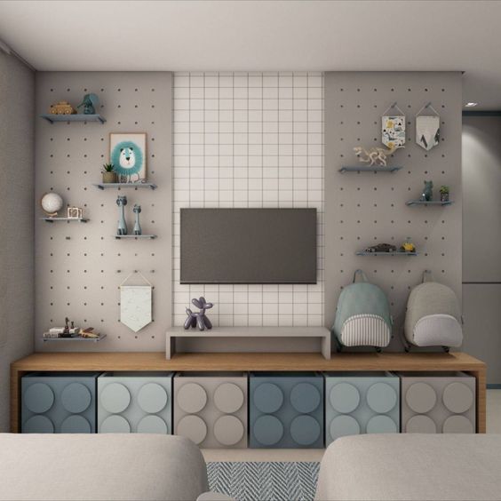 Раскиданные игрушки и книжки по всей комнате — многим знакома такая картина. Аккуратное и красивое хранение милых сердцу вещей поможет создать все тот же пегборд.