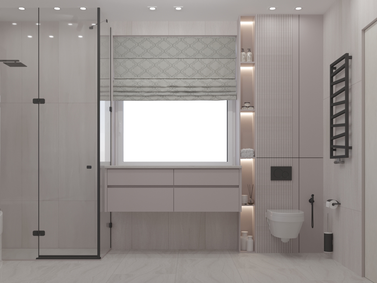 Столешница вместо подоконника в ванной комнате — отличное функциональное решение. Это сэкономит много места и свет лучше будет проникать в помещение. Главное, чтобы окно и столешница сочетались по цвету.
