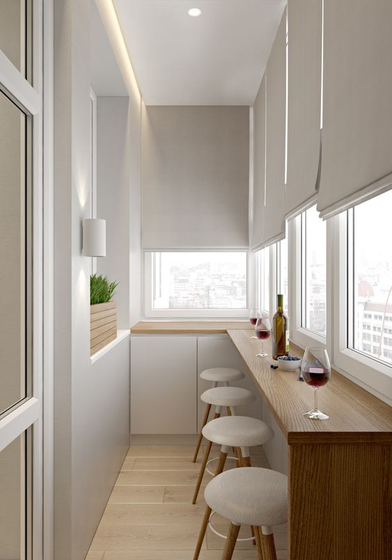 Яркий уютный балкон может быть прекрасным местом для отдыха и проведения времени. Но возникает одна проблема: мало места. Если же на балконе соорудить подоконник-столешницу и поставить пару стульев, можно создать удобное место для чаепитий и наблюдений за природой.