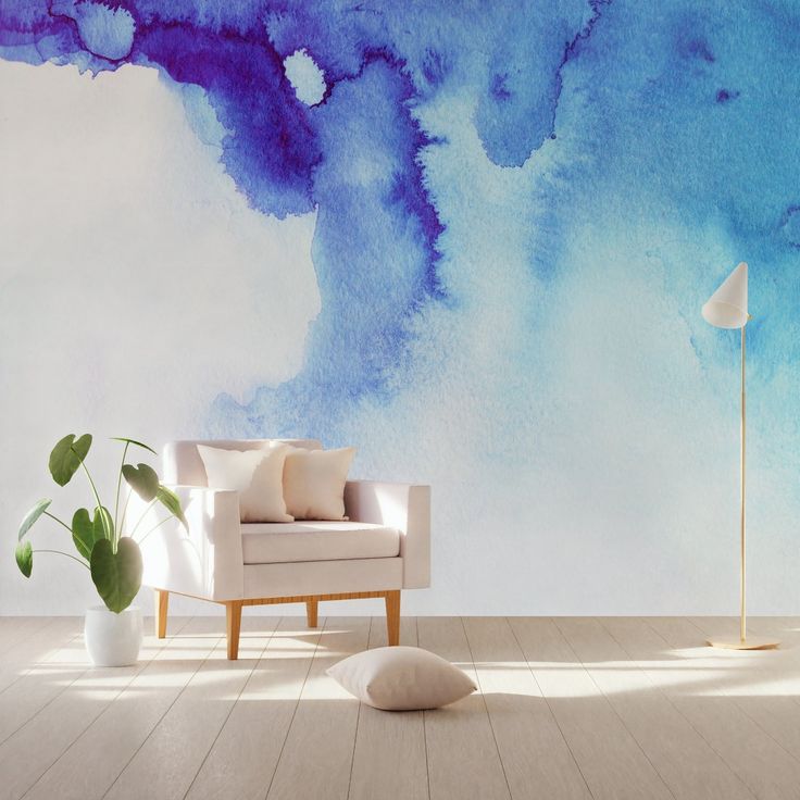 Все мы в детстве любили рисовать незамысловатые узоры, перемешивая все цвета палитры и поливая получившиеся разводы водой. Юные художники в нас так и кричали. Почувствуйте себя снова ребенком, перенеся детские рисунки на стены комнаты. Чтобы интерьер казался еще более ярким и оригинальным, добавьте текстиль такого же цвета, что и на стенах.