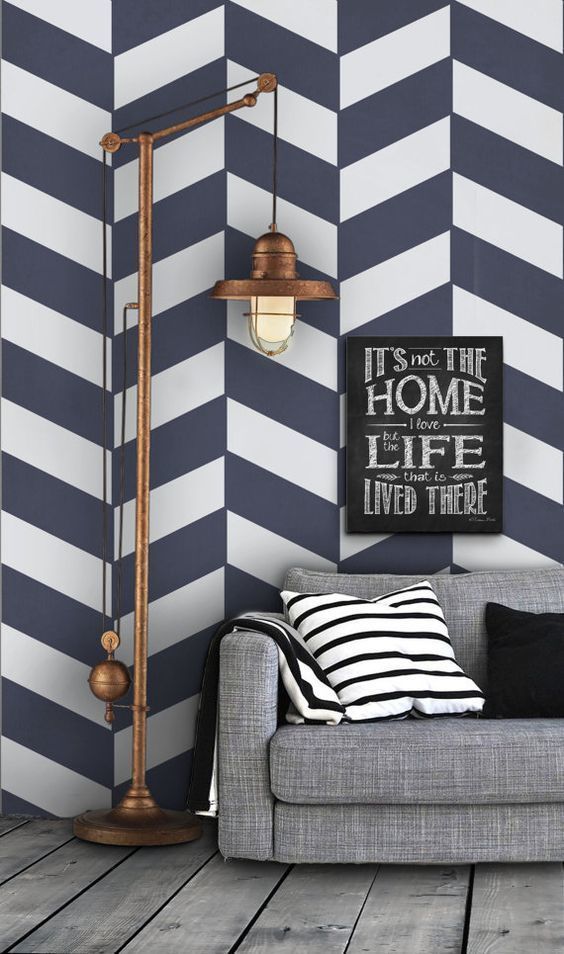 Еще один классный узор, который чем-то похож на шеврон. Но он не такой динамичный и броский. Очевидное преимущество этого вида декора — его лаконичность и легкость для восприятия. Эффектный геометрический орнамент может обеспечить выразительность любого помещения, и оно никогда не станет скучным и старомодным. Такой рисунок подойдет для любого стиля, так как он находит себе место как в винтажных, так и в минималистских и индустриальных пространствах.