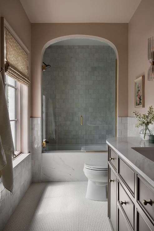 Как ни странно, в больших квартирах альков бывает в ванной. Сюда можно поместить саму ванну и обустроить функциональные полочки или шкафчики по бокам от нее.