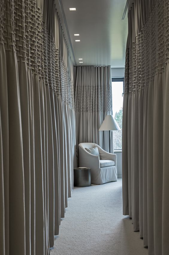 Кажется, вывод напрашивается сам собой. Однако, можно заказать 3D-тур по квартире у дизайнера и увидеть, что может получится. А мы предлагаем вам посмотреть разные варианты оформления шторами гардеробных комнат, чтобы окончательно утвердиться в принятом решении.