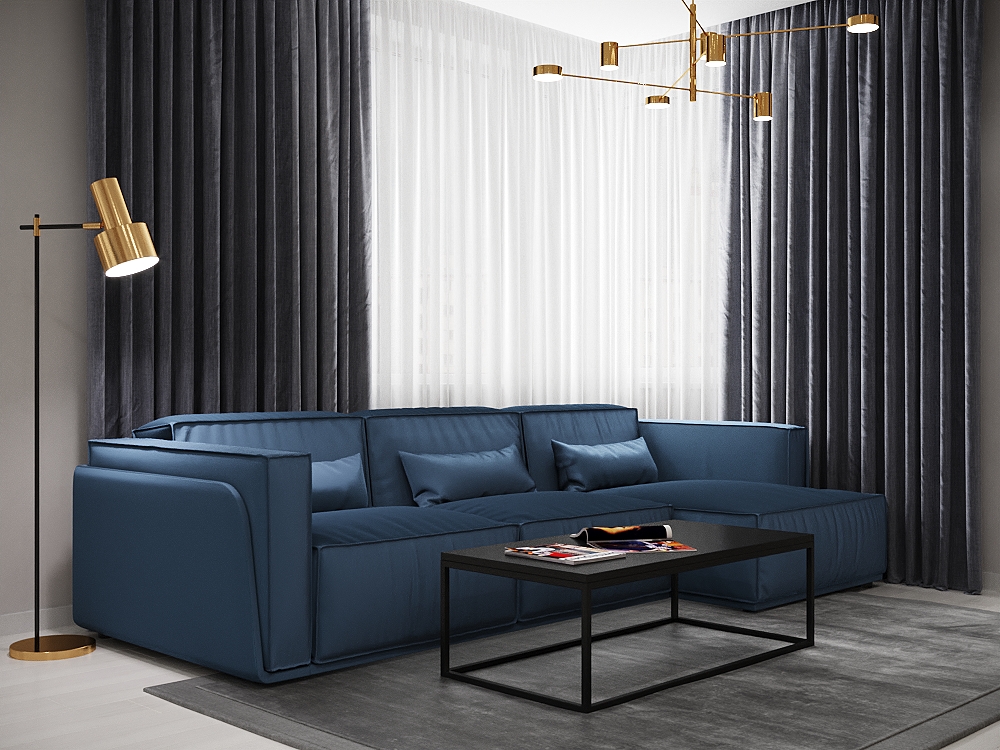 Если гостиная в синем цвете кажется вам мрачноватой, но вы любите этот цвет, используйте его в декоре. В любом магазине товаров для дома вы легко отыщете синий текстиль: пледы, шторы и чехлы для подушек.