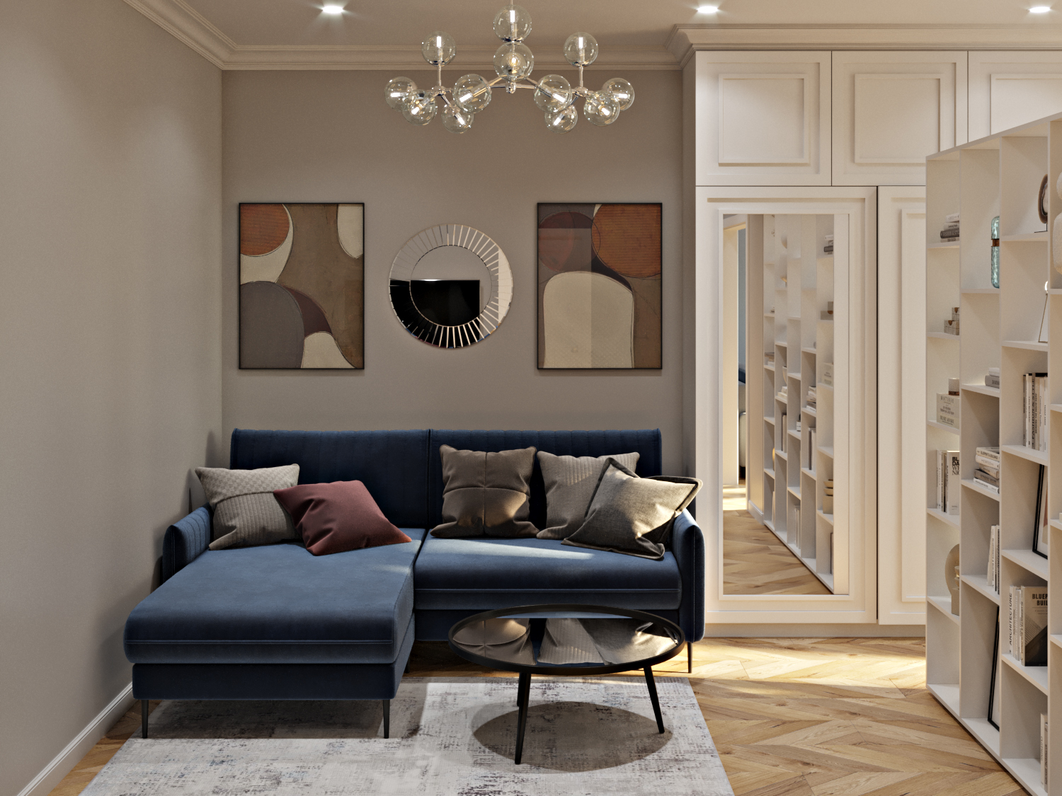 В классическом стиле хороши несколько вариаций синего. Если не хотите получить слишком нетрадиционный интерьер, оформите в синем цвете декор и аксессуары гостиной.