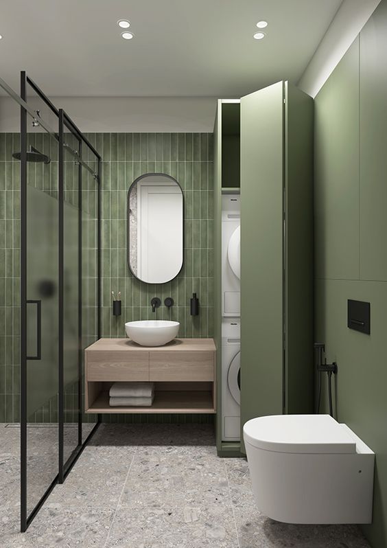 Зеленый в интерьере ванной комнаты